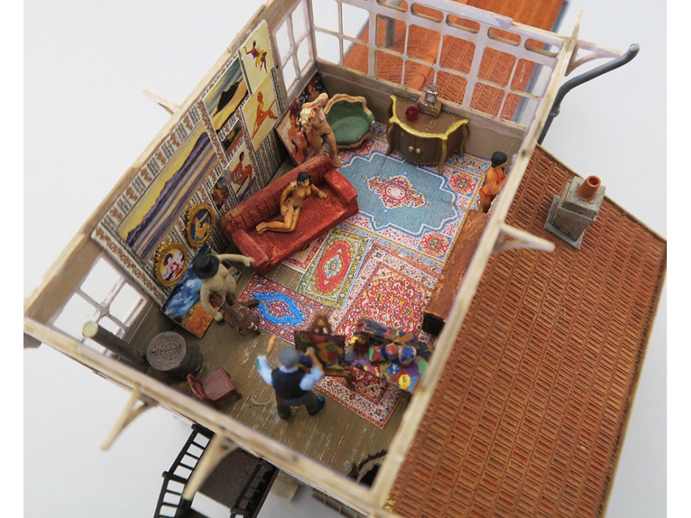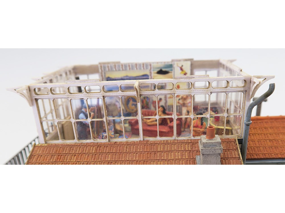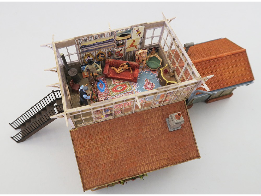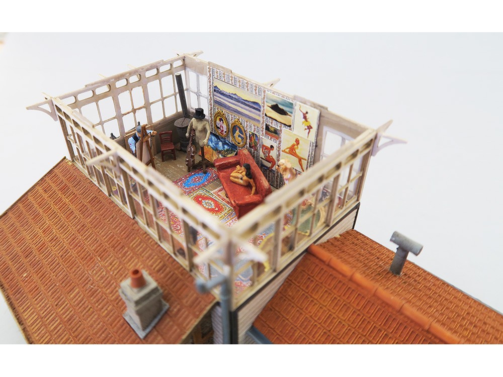 L'intérieur est entièrement aménagé : mobilier, objets divers, tapis, nombreux tableaux et affiches aux murs, le peintre et ses modèles. 2quipé d'un éclairage intérieur. Le toit n'est pas collé.
